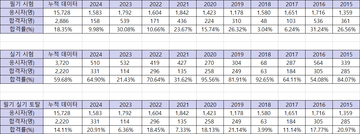 이 자격증의 합격률을 지난 10년간 데이터화해서 정리해보았습니다.