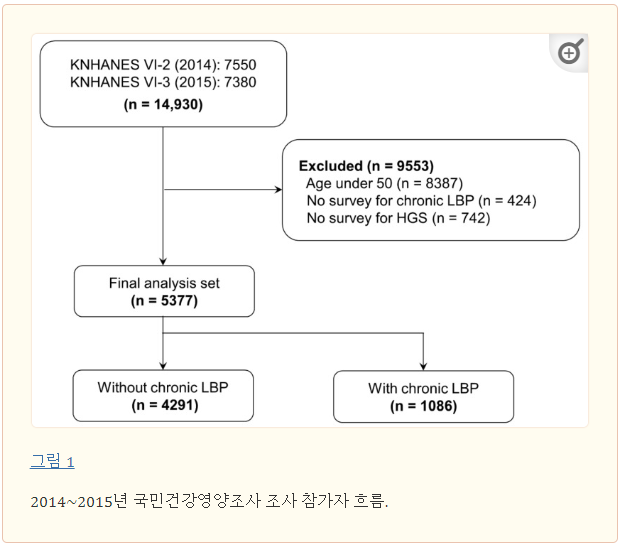 - 3개월 동안 30일 이상 허리 통증을 경험