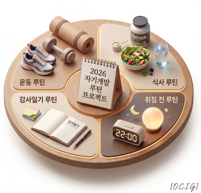 2026년 자기개발 루틴 프로젝트의 핵심은 “대단한 목표”가 아니라 운동 루틴, 식사 루틴, 감사일기 루틴, 취침 전 루틴을 매일 아주 작게라도 반복하는 구조를 만드는 것이죠.