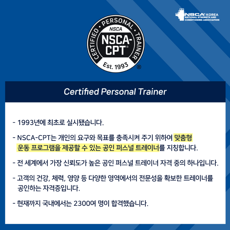 NSCA-CPT에 대해서 소개해드리겠습니다.